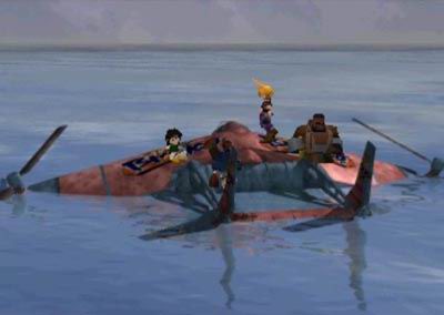 ไทนี่บรองโคที่พาลเมอร์ติดเครื่องไว้กำลังจะบิน พวกคลาวด์จึงรีบกระโดดขึ้นไป