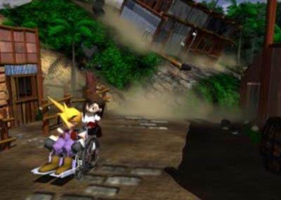 ทีฟาจะรีบลากรถเข็นพาคลาวด์ออกจากเมืองแต่ไม่ทัน