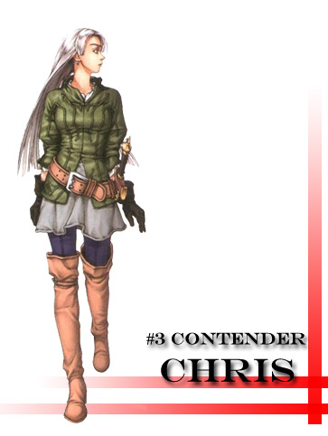 ถ้าใครมองว่าท่านคิกะแก่+เหมือนผู้ชายเกิน งั้นคริสก็น่าจะเหมาะกับตำแหน่งชนะเลิศตัวละครหญิงของ"ซุยโคเด็น"ที่สุดแล้วมั้งครับ