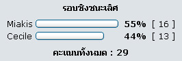 เซซิลแพ้แฮะ = = ฮึ่ม แต่มิอาคิสก็มีแววชนะแต่แรกแล้วล่ะครับ