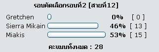 ...รอบแก้ตัวได้มาสี่คะแนนจากสี่คนแต่ต้องตกรอบเพราะโคลวิสเข้ามาโหวตคาสุ