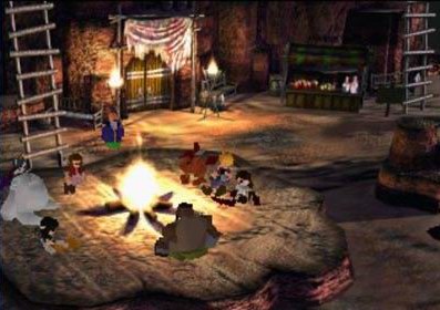 ตัดมาทางพวกคลาวด์ซึ่งนั่งรอบกองไฟกันอยู่